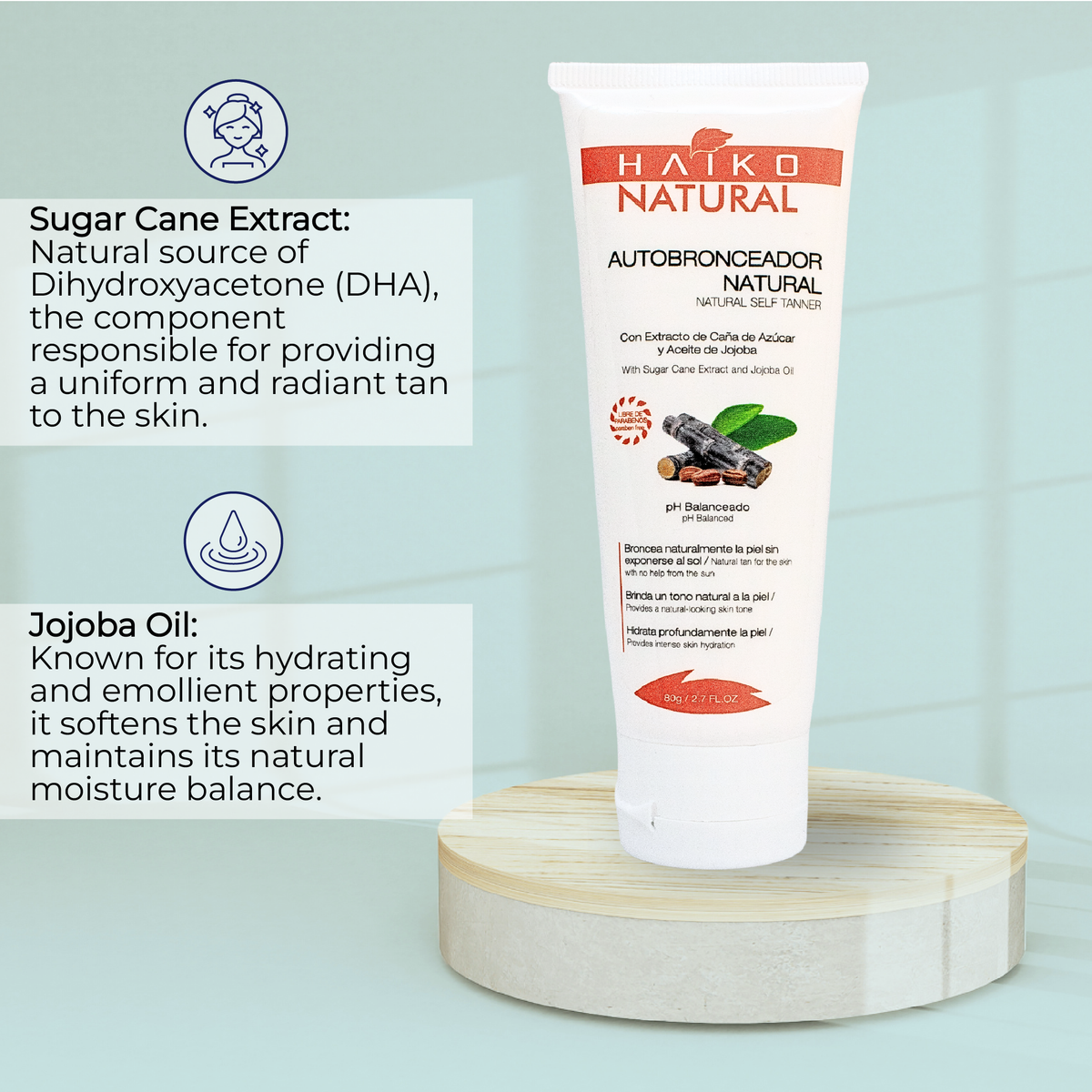 Our NATURAL SELF-TANNER WITH SUGARCANE EXTRACT AND JOJOBA OIL is the perfect solution for achieving a natural, even tan without exposure to harmful UV rays. Formulated with Sugarcane Extract, this self-tanner harnesses the power of nature to provide a golden, healthy-looking tone, while Jojoba Oil delivers deep hydration, leaving your skin soft and nourished.
